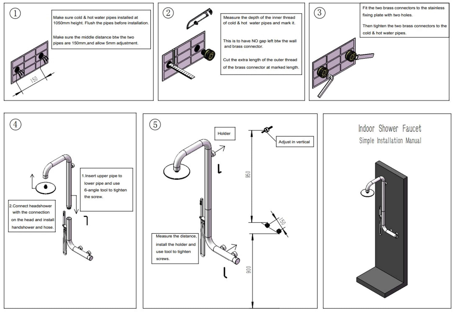 – Si raccomanda di spurgare l’impianto prima di collegare i tubi dell’acqua per evitare che sporco ed impurità possano arrivare all’interno della doccia creando malfunzionamenti.