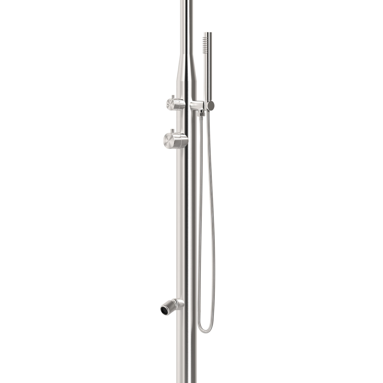 Doccia classica inox per esterno Sined di alta qualita, la doccia inox è stata pensata e realizzata per qualsiasi installazione all`aperto. La doccia con doccino modello STINTINO INOX è una doccia in Acciaio Satinato Aisi Inox 316L con ingresso acqua calda e fredda. La doccia per esterno è ottima per uso commerciale, privato, per piscina esterna-interna, giardino, per il bagno di casa, SPA o TERME. Altezza 2280 mm. diametro 60 mm.
