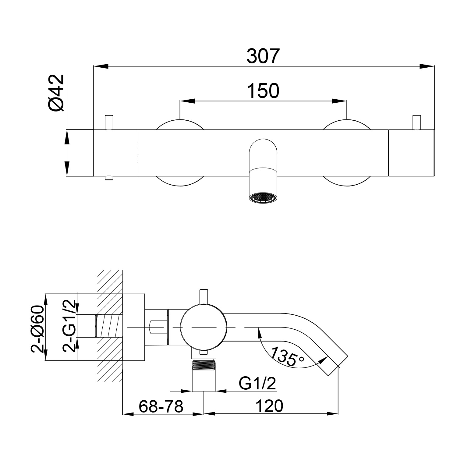 MISCELATORE-MURO-DOCCIA-VASCA-LEVANTE-INOX | Miscelatore per vasca da bagno e doccia
