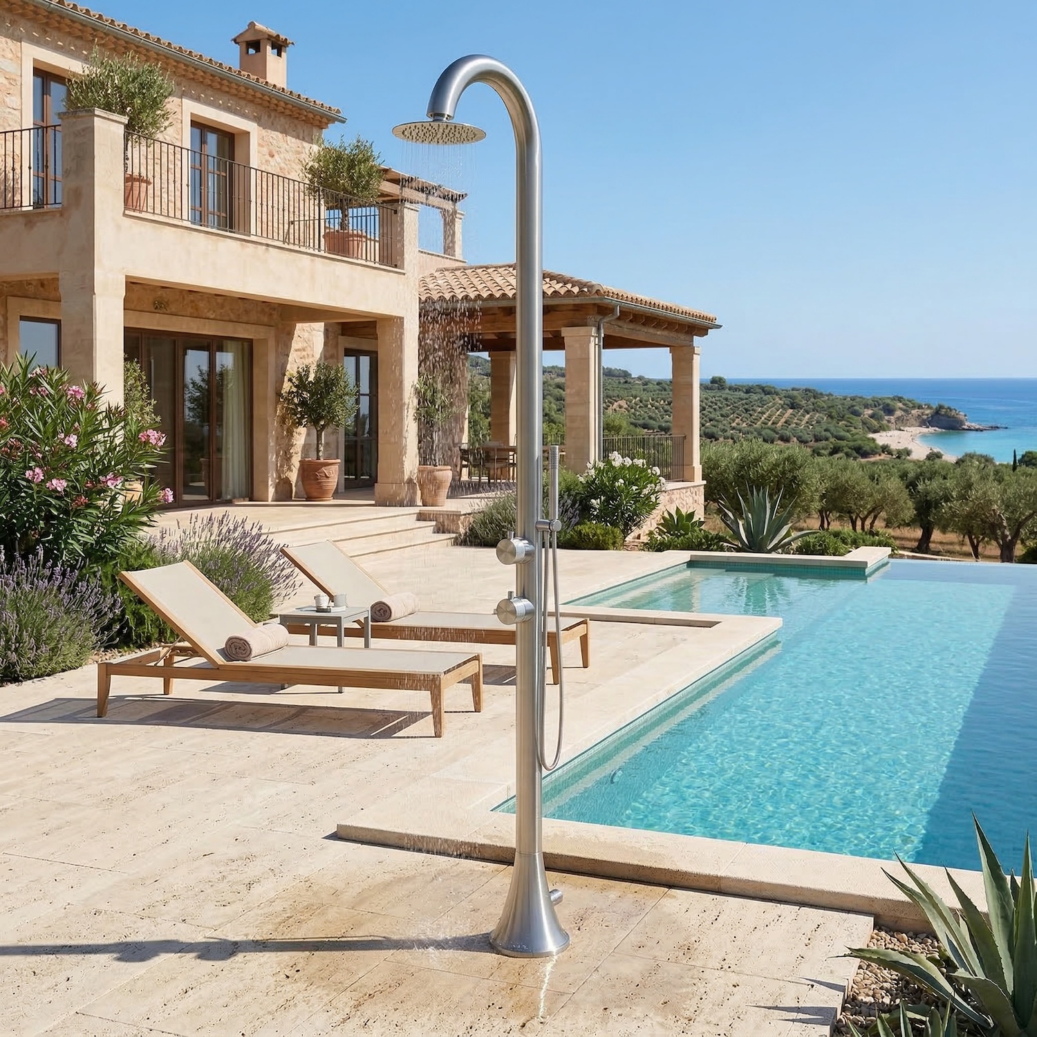 Doccia Spa Compatta MX1011 in Acciaio Inox 316L con Miscelatore Progressivo 3 Vie, Controllo Completo di Intensità Getto, Temperatura Acqua Calda/Fredda e Direzione Erogazione, Ideale per Bagno, Spa, Centri Benessere e Installazioni Outdoor di Design.