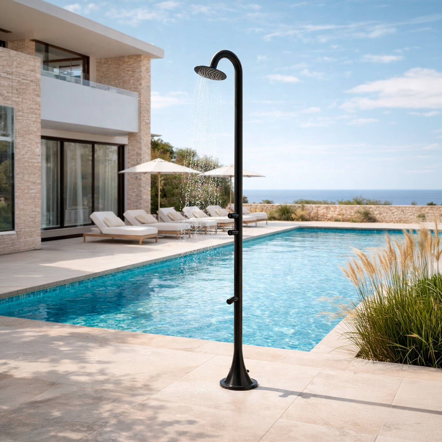 DOCCIA-INOX-LUNA-DOPPIO-TMP-NERA | Doccia Inox Nera Temporizzata Da Esterno