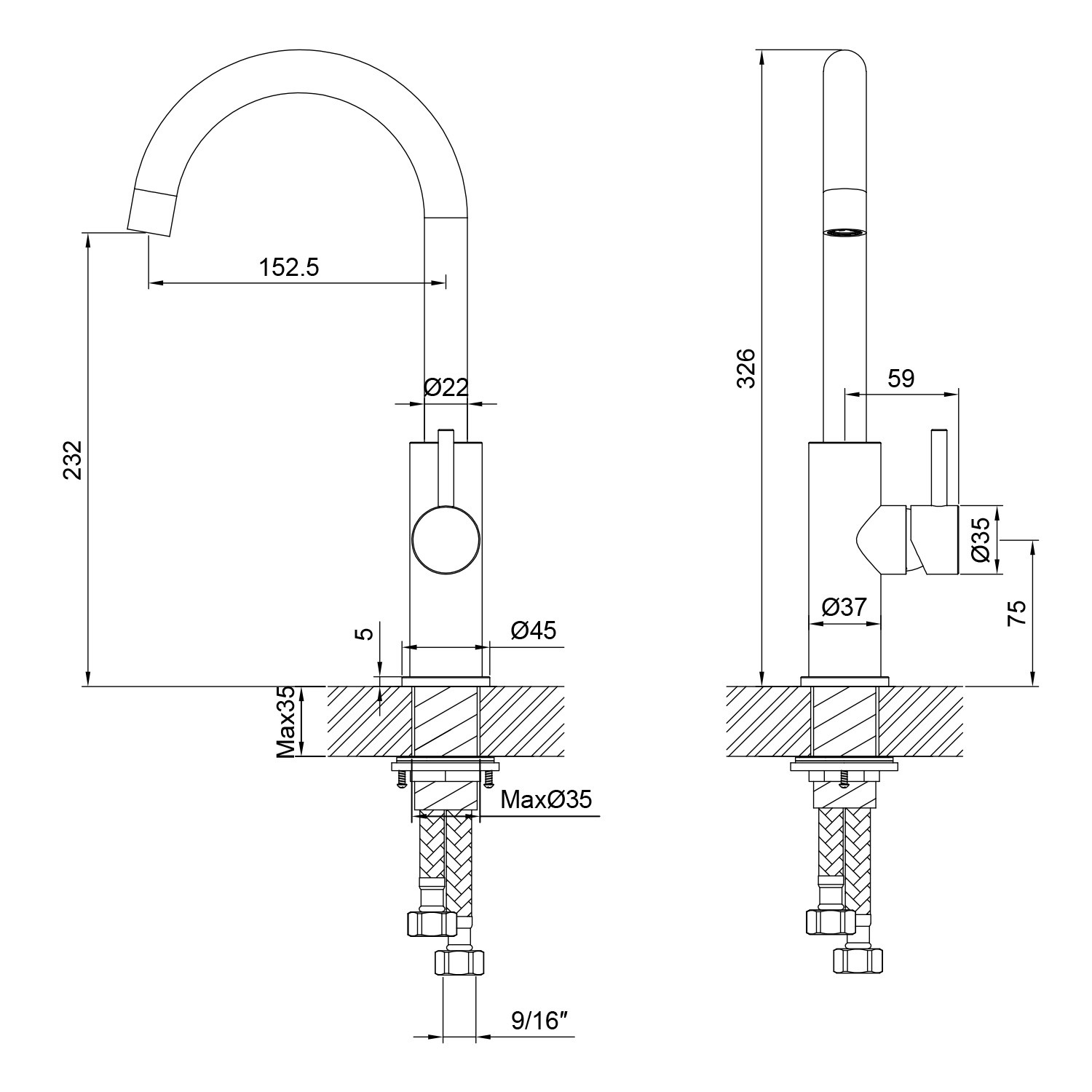 RUBINETTO-LAVELLO-LEVANTE-BASSO-NERO | Rubinetto cucina SINED LEVANTE inox 316L